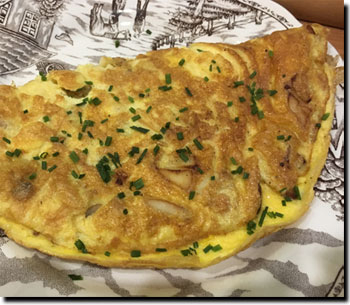 L'omelette version Mère Poulard: Cette mytique omelette connue et appréciée du monde entier est encore aujourd'hui un spectacle donné au quotidien dans le restaurant de la mère Poulard au Mont St Michel et n'a plus rien à voir avec la véritable omelette Poulard.